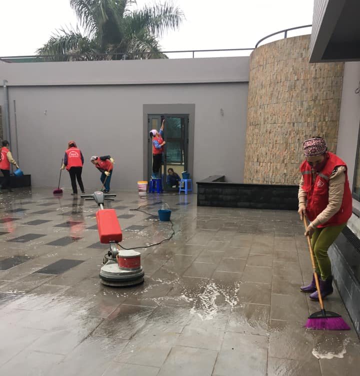 • Vệ sinh khu vực ngoài trời: Dọn dẹp sân vườn, khu vực hồ bơi, lối đi, và các trang thiết bị ngoài trời.